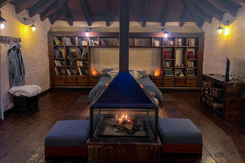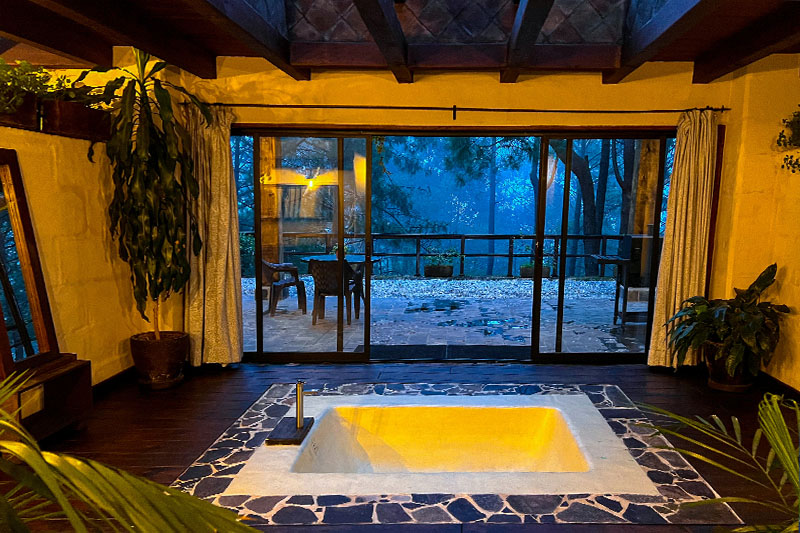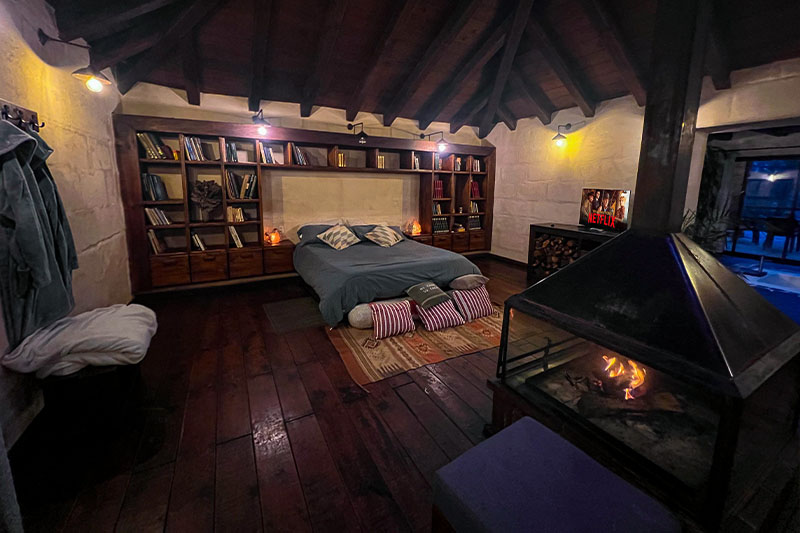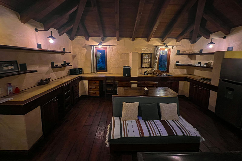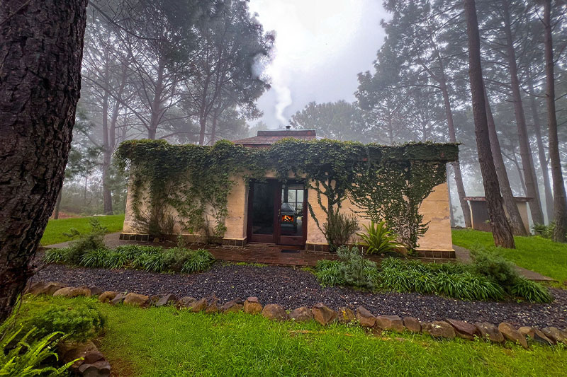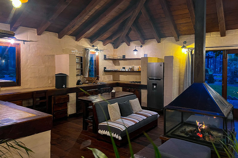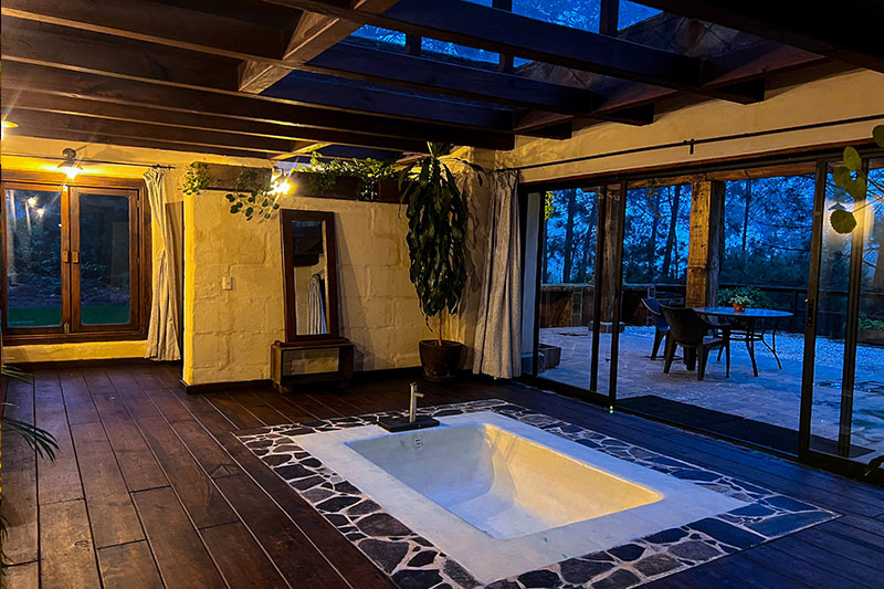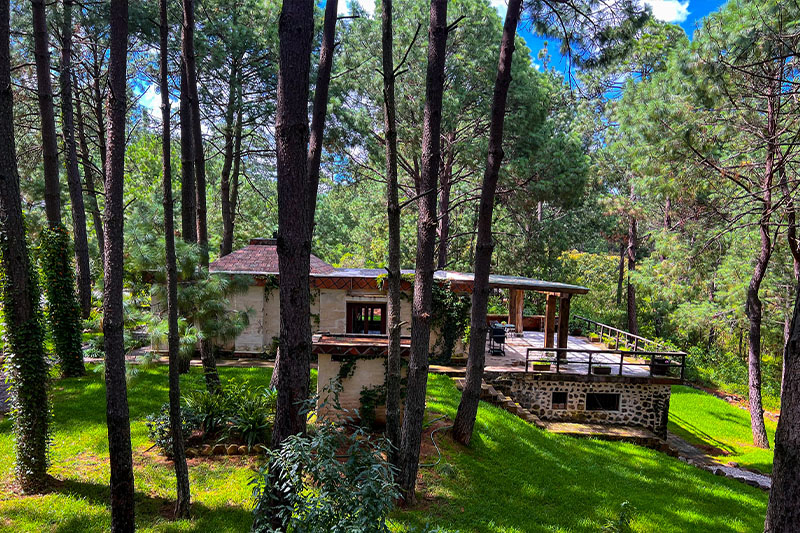 Cabaña-Loft Sustentable para 2 personas. Totalmente Privado en el Bosque, dentro de una Propiedad Privada llamada Tierra de Kha, ubicado a 5 km del pueblo de la Manzanilla de La Paz, Mazamitla. Construido con una mezcla especial de tierras de la región, lo que le brinda una excelente resistencia y termicidad. Se maneja captación de aguas pluviales y luz solar.